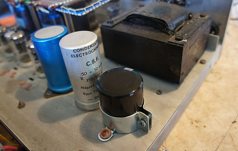 L'examen des composants (remarquez le beau câblage en l'air à l'ancienne) révèle tout de suite la vieillesse des condensateurs micas :
